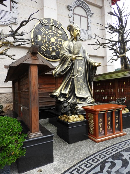 位於桃園縣龜山鄉大坑路的威天宮,是知名電視製作人李鵬為了還願所蓋的武財神關公廟,經過了十七年的時間,花費了八億台幣,該宮為了環保不燒金紙、不點香,而用轉運龍銀來代替祈福,也是其特殊之處,高七米二十的關公銅雕是全台室內最高的關公像。