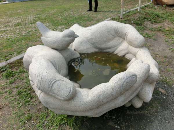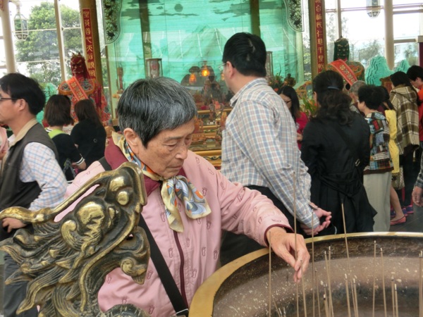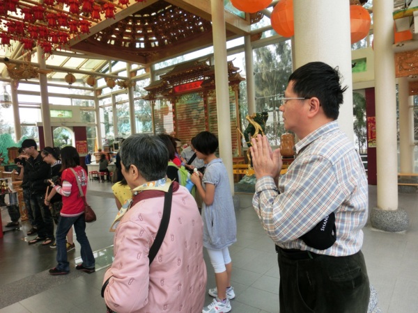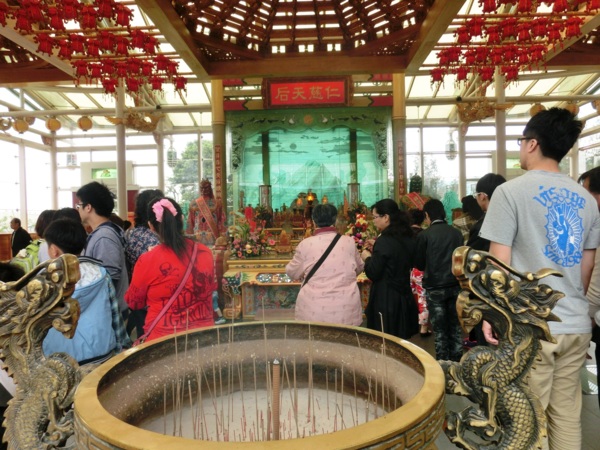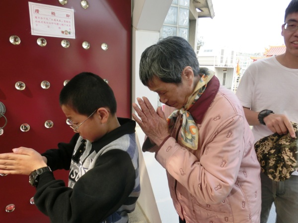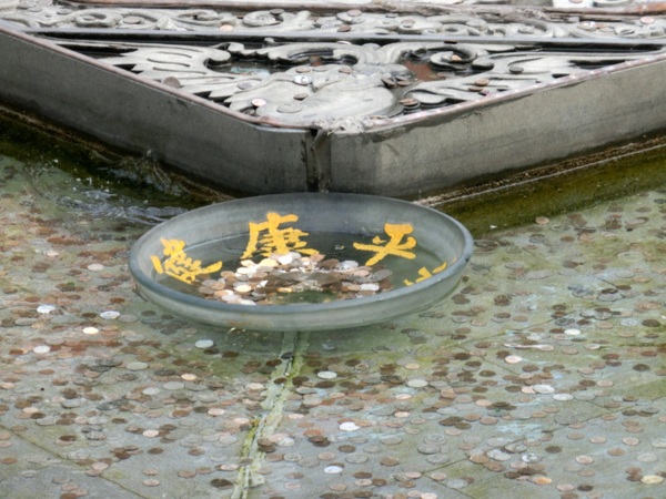 14:34 老媽與四哥天池許願池投錢祈福