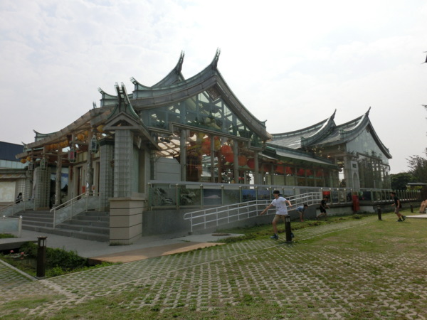 坐落在彰化縣鹿港鎮彰濱工業區,由彰化的台灣玻璃館募集了130家玻璃廠商,在台灣玻璃館旁建造佔地三百坪左右,總共用了約七萬片的玻璃搭蓋,廟館內挑高4公尺,整座廟館幾乎都用玻璃搭蓋而成,透明的廟館建築光線與天空營造出新的廟宇建築空間新感受。玻璃廟係以筏式水泥基座結合鋼骨作主結構,而後再運用高科技隔熱安全玻璃作屋面及外牆材質,進而以木雕、石雕精品,融合彩繪窯燒、熱塑、堆疊玻璃執行內裝修飾,多元文化及藝術創作匯聚構築而成,強度可耐八級地震,十七級陣風。