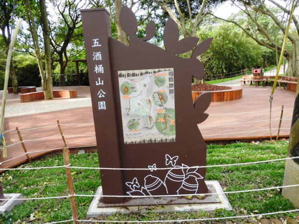 五酒桶山內有多條步道,您可依體力、需要選擇您要走的步道。六福步道約40分鐘、知性步道約1小時、崙頭土地公約1 小時、環山步道約1.5小時、海山之路約2小時。五酒桶山休息亭堆有五個陶製酒甕,是五酒桶山的標誌、也是五酒桶山的中心點,為本鄉外社、營盤、內厝、山鼻等村的交界。