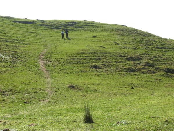 從桃源谷至草嶺埡口4.5公里的地形,為一邊陡峭、一邊緩斜的單面山地形,山呈東北─西南走勢,東側為長滿樹林的陡急山崖,西側為短草蔓生的緩坡草原。由於東北季風長年影響,草原樹叢多為風衝矮林,也就是迎風面的喬木受到強風衝擊,頂芽枯死,側芽發達,外形有如低矮的灌木,葉片為細小且厚而硬的種類,又稱為硬葉林。