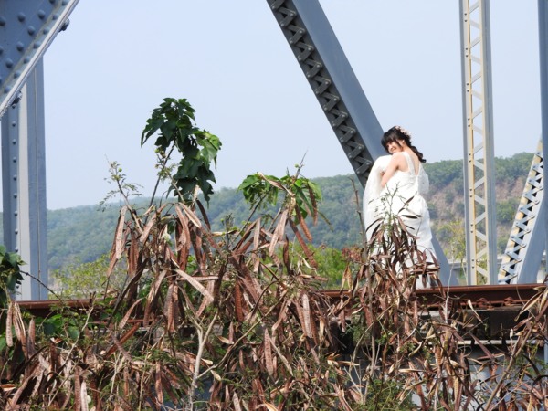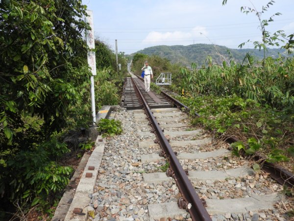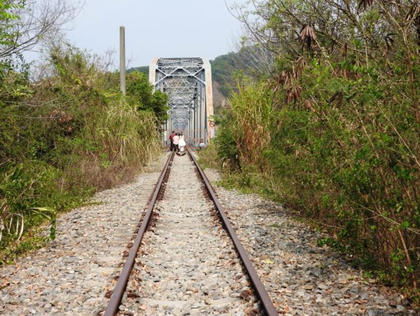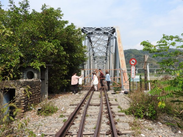 13:20 沿舊鐵道走到大安溪鐵橋 (以鐵網門封閉,但鐵網被人破壞,有新人入內拍攝婚紗照)邊