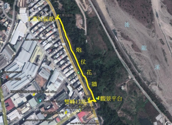 15:12 銅鑼工業區新興民有路口 (雙峰口站)下車欣賞炮仗花牆