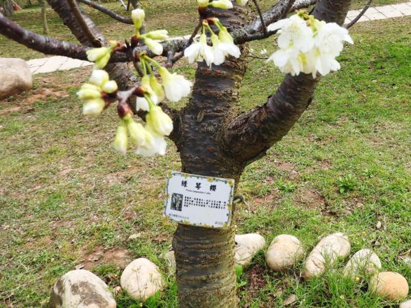 花色雪白、夜裡會反光的綠萼櫻,由日本命名已近九十年,經彰化縣芬園鄉花農張洲府復育及考證後,發現原來是台灣原生特有亞種櫻花,向經濟部智慧財產局註冊後,今年俗名重新命名為譗福爾摩沙櫻豃。
