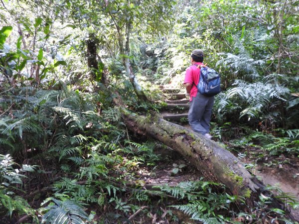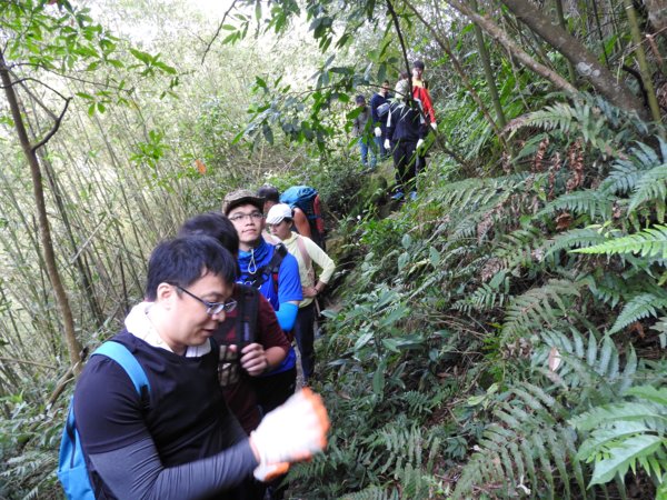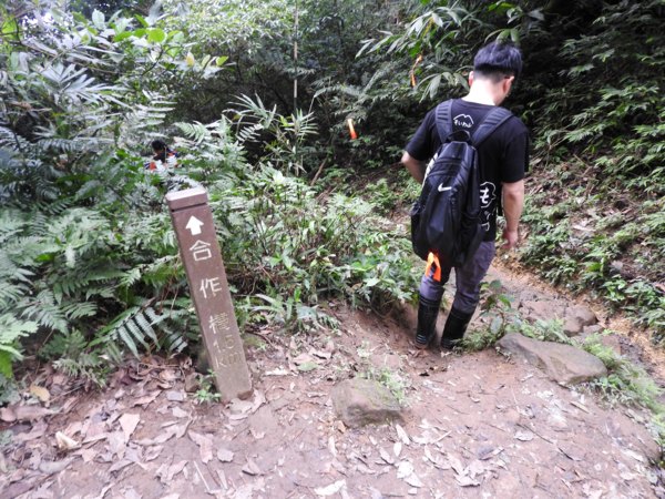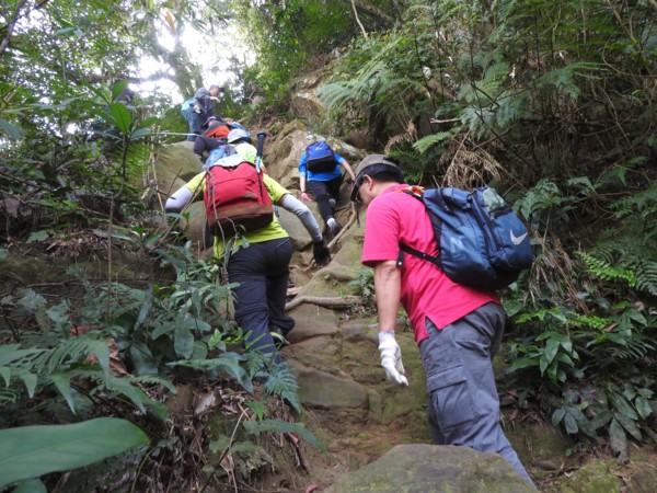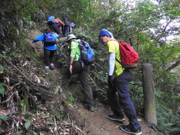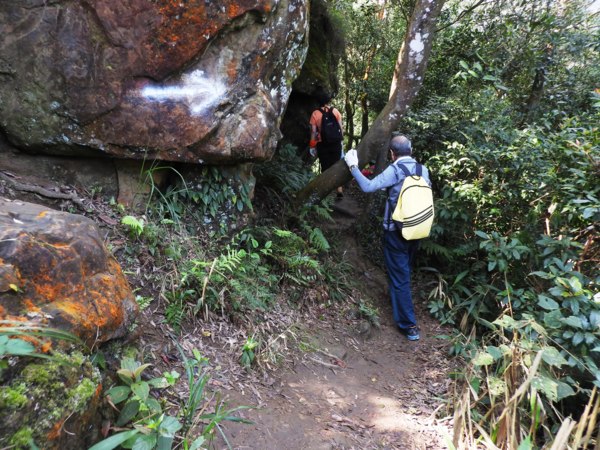 13:53 拉繩垂降抵登山地圖位置7號點「茄苳樹鞍部」岔路口(海拔536公尺),取左上