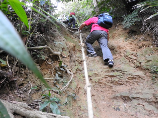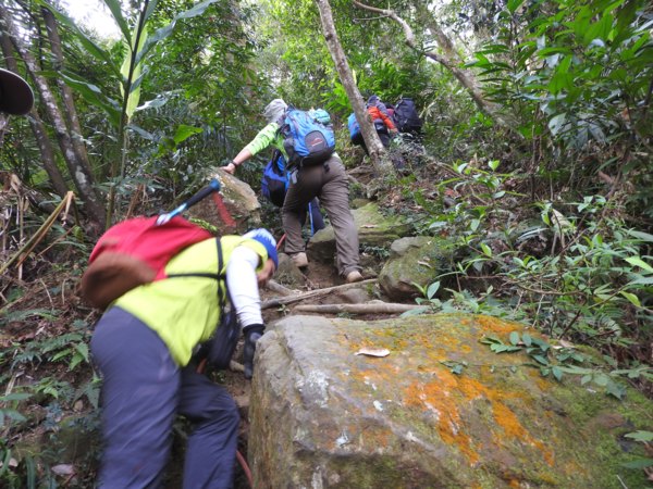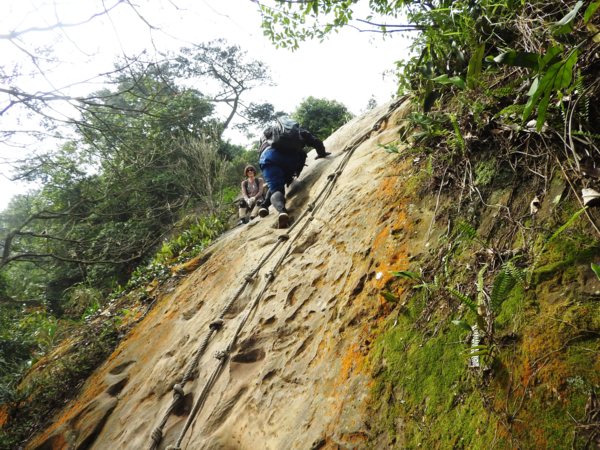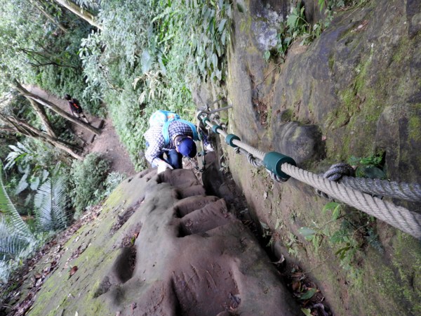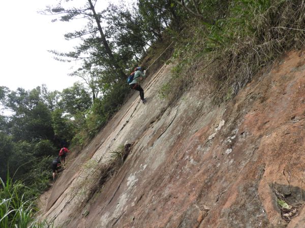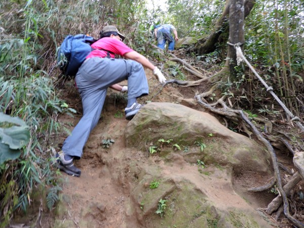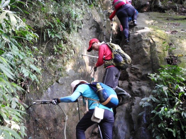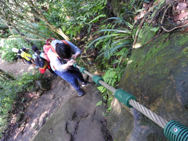 09:33 塞了好久,原來是到了第一個岩壁攀繩處(接下來就是數不清的攀繩處)