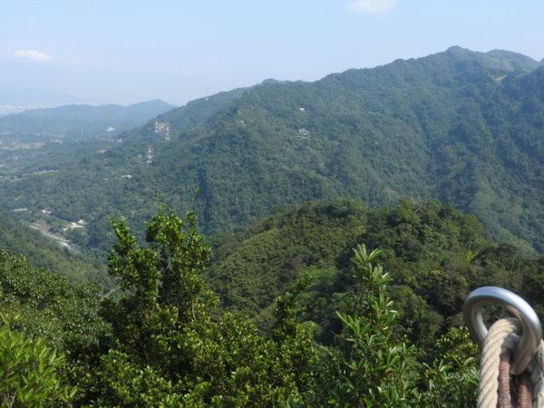 13:00 岩稜末端處休息,吃三峽老街買的小籠包,遠眺五寮尖
