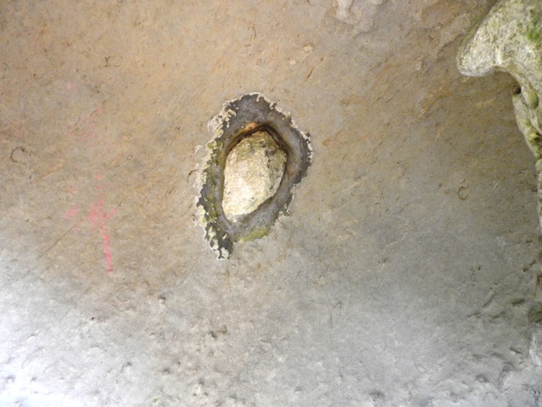 海蝕洞中有顆侵蝕作用留下的「岩結核」,有心人曾在洞口砌上石案,擺上香爐、點上蠟燭供奉,且喚之「石壁公」