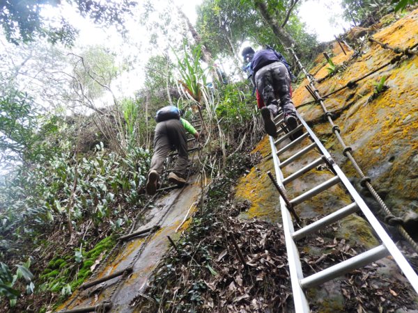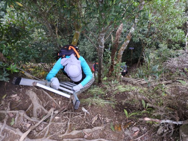 14:21 拍完登頂照後,從垂直鋁梯下山
