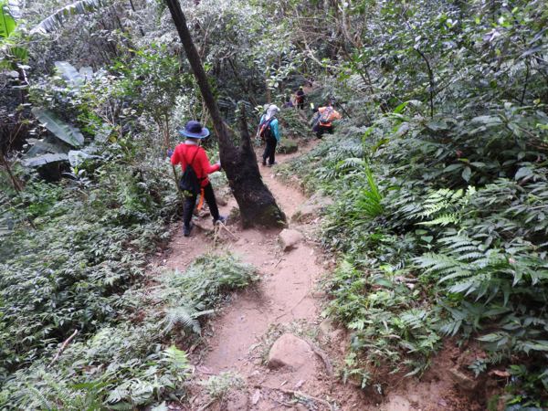 14:44 從後山路下山,一路濕滑