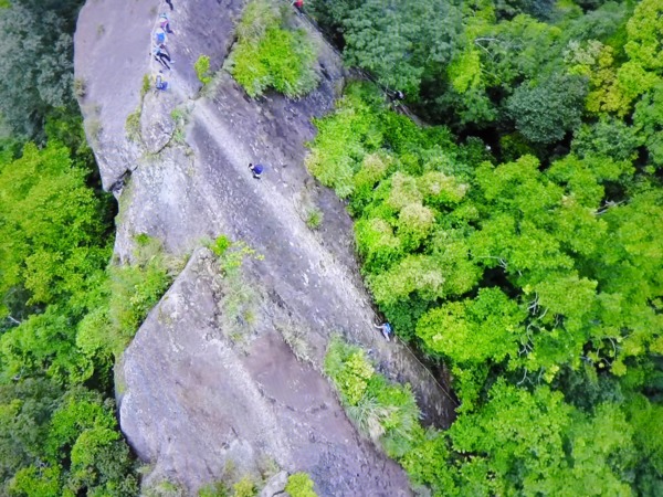 爬上「峭壁雄峰」對面獨立峰的隊友所拍攝的「峭壁雄峰」塞車圖