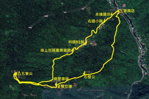 附錄 : 三峽合作橋起登經峭壁雄峰上五寮尖小O型路線圖