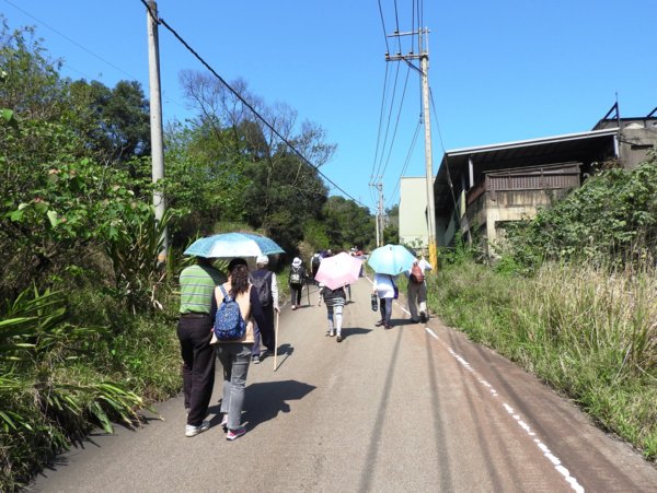 10:15 台13線(尖豐公路)53.5K處下車右轉進入產業道路(入口有石柱及廢棄迷彩屋),開始健行