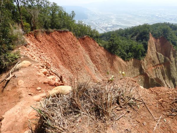 12:30 斷崖上俯視大峽谷,非常壯觀,但崖邊地基已掏空,非常危險,賞景千萬不要太靠近崖邊 (後記 : 2020年4月17日下午驚傳警員山友站在崖邊拍照,因掏空的崖邊地基崩落,而墜谷身亡)