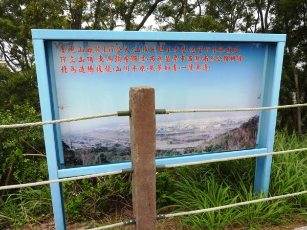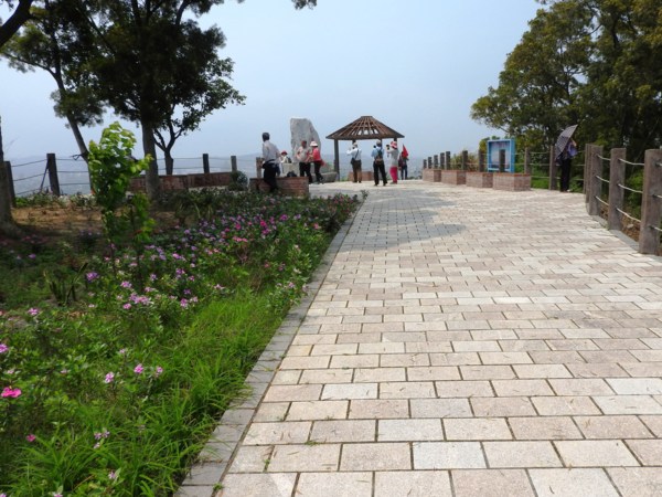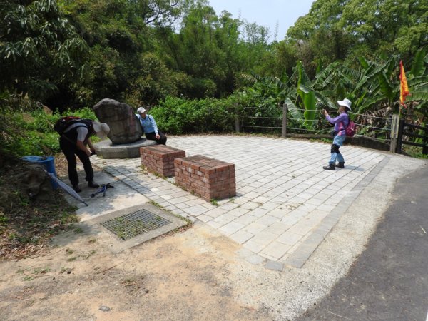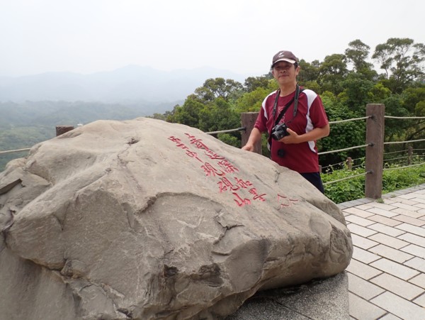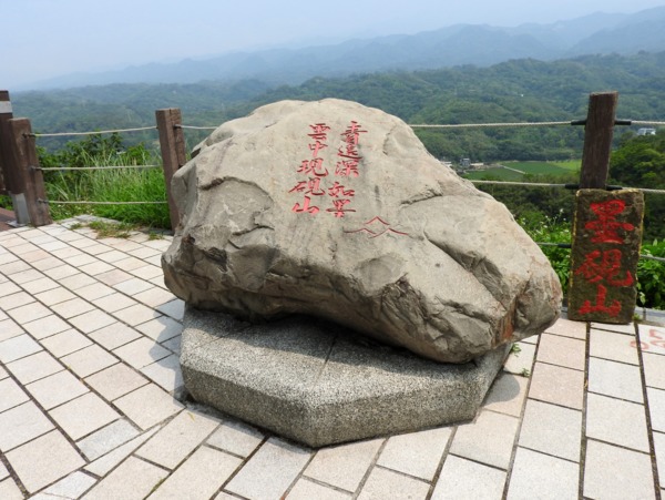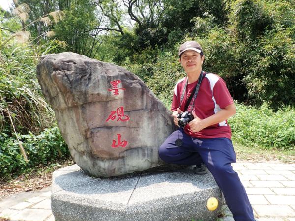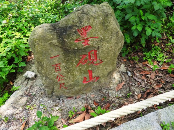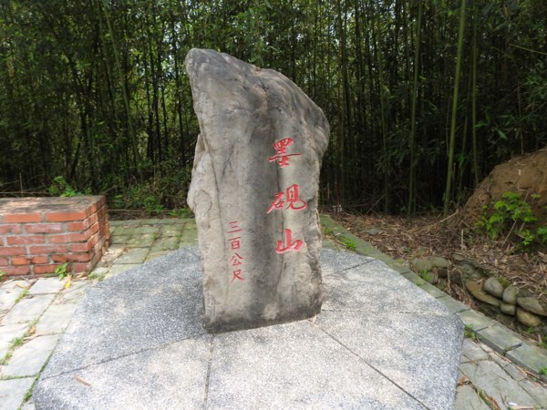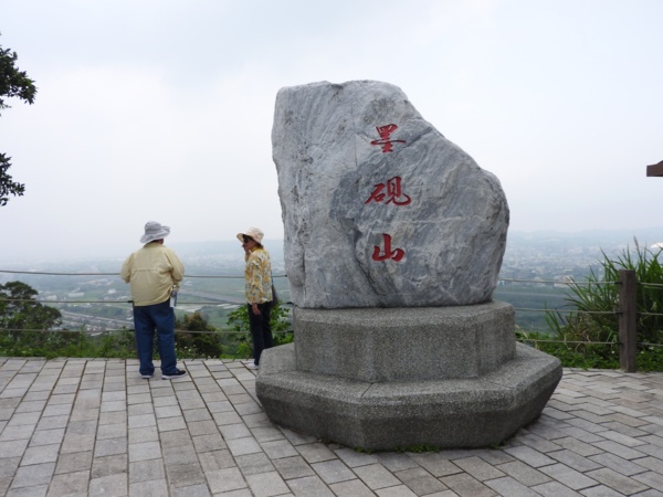 12:29 墨硯山北峰觀景台上"青遠深如墨,雲中現硯山"勒石(墨硯山北峰海拔高度約153公尺,有一顆編號144號的三等三角點,建造觀景台時,將其移到紅磚椅旁)