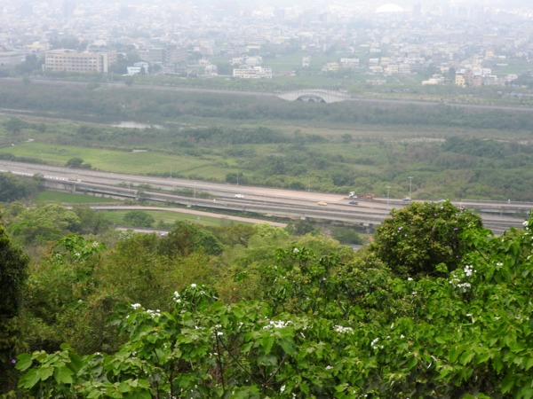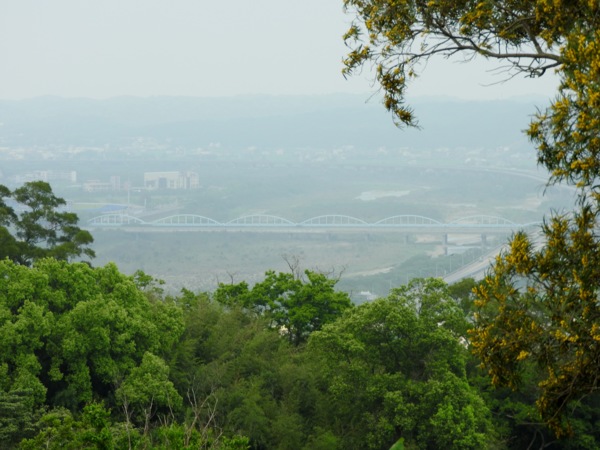 12:30 北峰觀景台俯瞰後龍溪邊的中山高與台72線(東西向快速公路-後龍汶水線,別稱「後汶快速公路」)及新東大橋(今天看不清楚)、玉清大橋、頭屋大橋