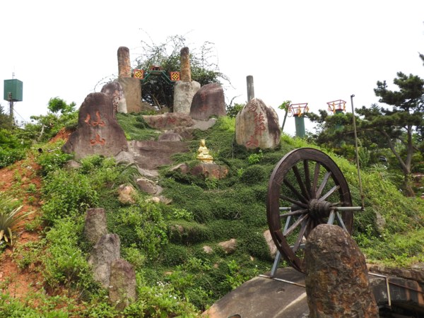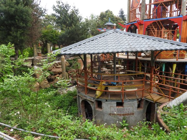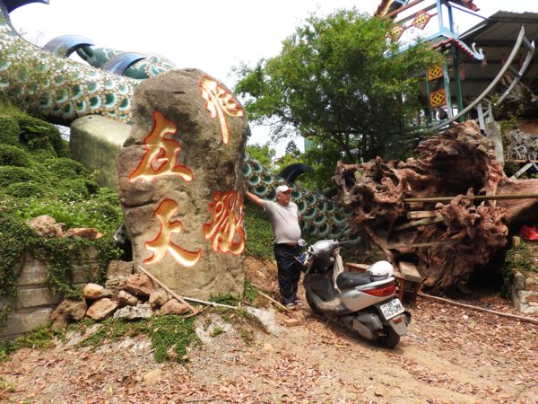12:44 莊園呈現施工中的狀態,非常凌亂與庸俗,我在墨硯草堂裡面與"墨硯山"勒石合影紀錄,感嘆青山成俗路