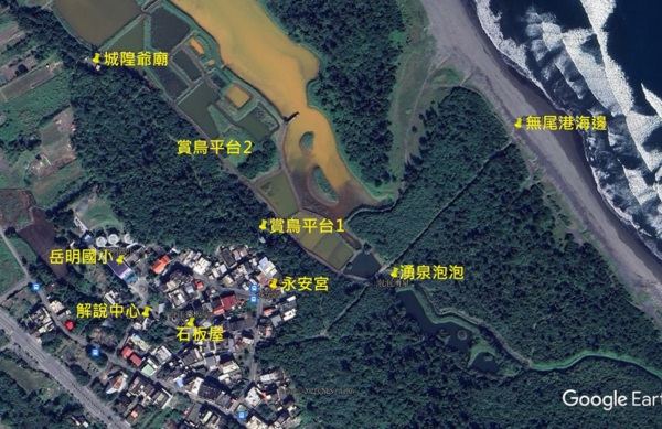 本濕地原為新城溪出海口,因出海口河道淤塞,而形成一片海岸沼澤地,故名「無尾港」。水鳥保護區內設有賞鳥平台、觀察小徑、賞鳥堡等,讓人們可以邊散步邊觀察一旁是否有水鳥的蹤影。對喜愛用鏡頭捕捉鳥群的人們,還貼心設置了「賞鳥小木屋」,讓鳥類攝影愛好者可以隱蔽在小木屋裡頭,安靜得等待水鳥現身。每年十月到次年二月是冬季候鳥的停駐期間,也是賞鳥的最佳季節。