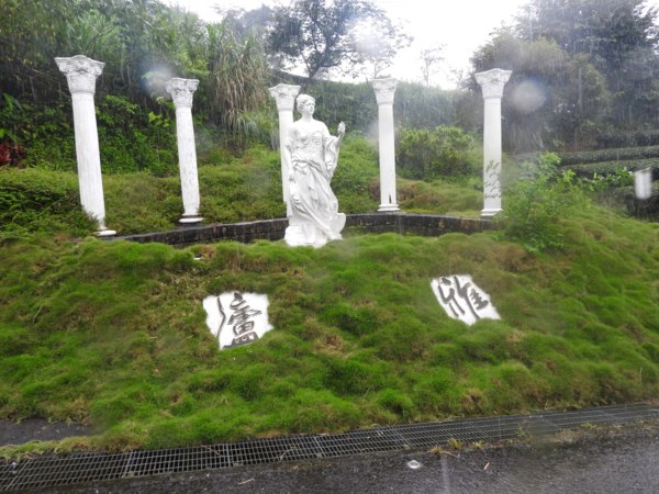 13:15 路過雅廬景觀渡假別墅(宜蘭縣大同鄉玉蘭36號)入口雕塑,雨越下越大