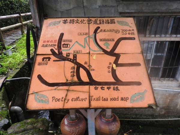 玉蘭茶園步道全程走完大約需要3到4個小時,步道終點是山頂的觀景平台。步道的其中一段設為「玉蘭茶詩文化步道」,步道入口由永興民宿旁邊開始,至淋漓樹折返,是一條充滿詩意的山中小道,沿途可見由休閒農業區的業者所提供的詩詞,步道中間休息站則是淋漓樹。