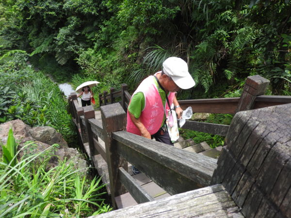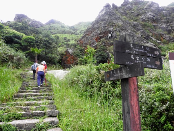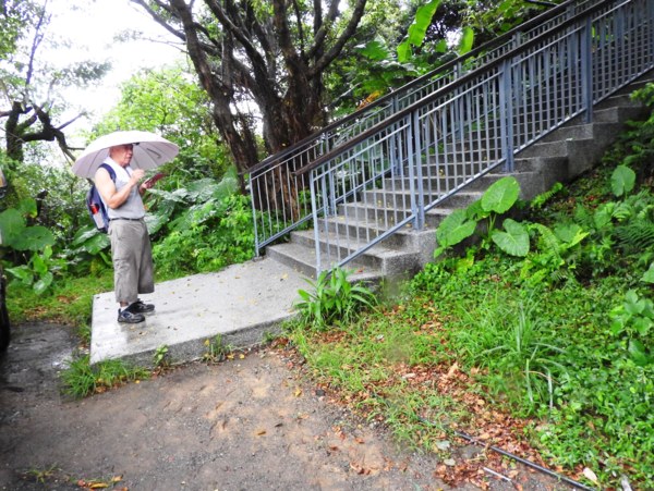 11:02 過木棧橋後右轉無耳茶壺山登山口(無耳茶壺山有三個登山口:一.黃金博物館附近、二.勸濟堂後方、三.勸濟堂右上方的浪漫公路觀景台附近)