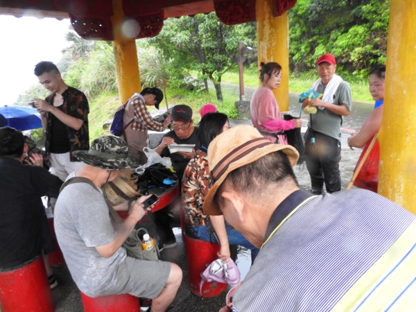 13:14 回到遊覽車上換掉汗水與雨水侵濕的上衣