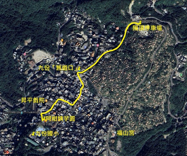 13:43 走抵九份「舊道口」(汽車路與基山街的交叉口),轉進基山街