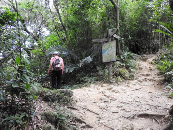10:48 叉路口(左上即是永安宮,右往五十分山),領隊說先往右到彩壁後,繞一圈從永安宮下來