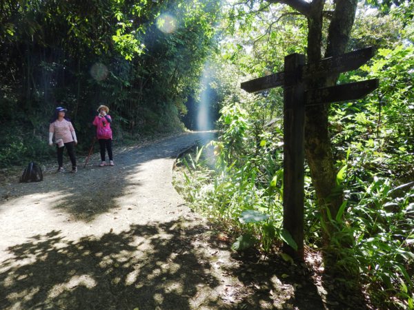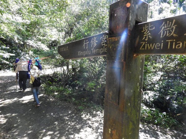 14:25 離行修宮2,260公尺指標木柱叉路口,左上往紫微觀景台入口,續直行
