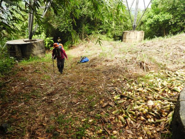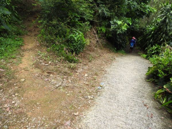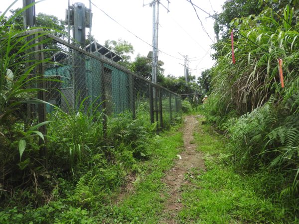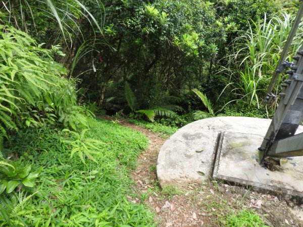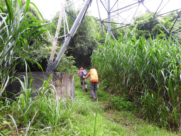 10:45 岔路口,右側隱約可以看到電塔,在此休息(事後查網路得知這個龍門-龍潭紅線102電塔旁視野大好,可俯瞰翡翠水庫大壩,下回登臨千萬不要錯過)