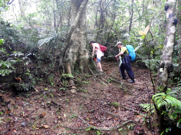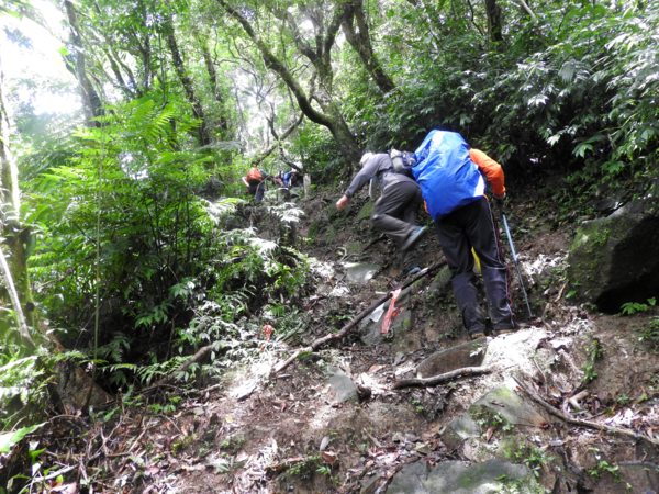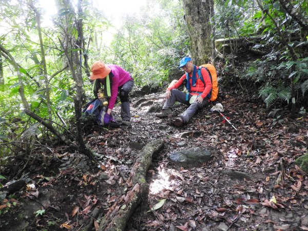 12:34 天空時有悶雷,本預定休息到13:00,怕遇大雨,遂提前由岔路口左下開拔往二龍山(右是往暗寶劍山)