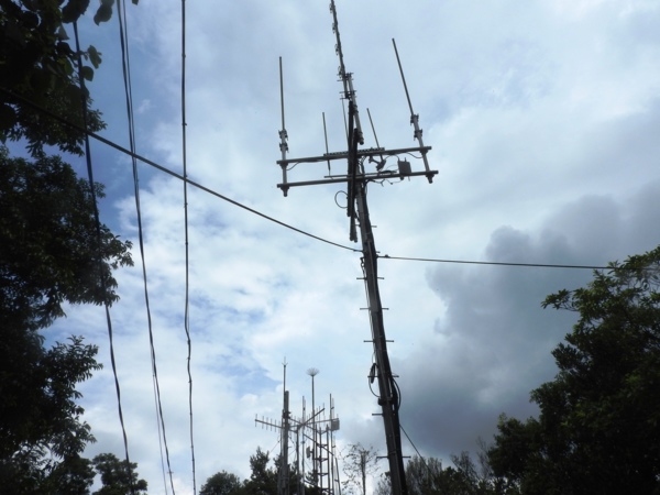 12:01 終於抵達海拔728公尺的直潭山山頂,1045號二等三角點約在登山步道3.3/5.1K處,山頂腹地設有氣象局雨量自動測報系統(直潭山中繼站)與基地台