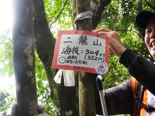 14:09 二龍山山頂海拔352公尺,有殖產局圖根三角補點(基石約在二龍山登山步道2.3/3.4K),可遠眺塗潭山、直潭淨水場
