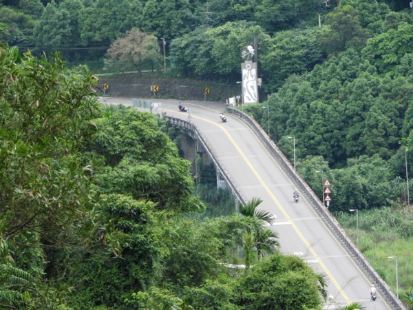 12:39 排隊拉繩陡下中,俯瞰新店安坑垃圾焚化廠煙囱,直潭淨水場、新店溪