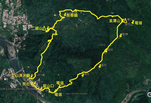 今天健走是從民壯亭起登直潭山、二龍山的O形路線