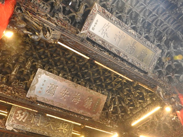 信眾近悅遠來,大甲鎮瀾宮一再增建整修,雕築得金璧輝煌,呈現今日富麗堂皇的樣貌,大甲鎮瀾宮以吉祥圖案搭配莊嚴的石雕、精緻的木雕、鮮少的彩繪等裝飾,形成金堆銀砌的知名古廟且具權威象徵的建築物,大甲鎮瀾宮對聯、匾額多方,如「護國庇民」、「保國佑民」、「聖德長垂」、「帝澤咸庥」、「保佑黎民」、「普施恩澤」、「慈雲廣覆」、「慈光普照」、「神澤蒼農」、「神賜百福」、「與天同功」、「佑濟昭靈」、「聖心佑民」、「功添天下」、「慈雲灑潤」、「神光廣昭」、「誠求立應」、「庇民護國」、「德保生民」、「慈恩廣被」等等,懸掛在大甲鎮瀾宮內各個主殿內。