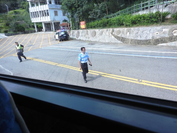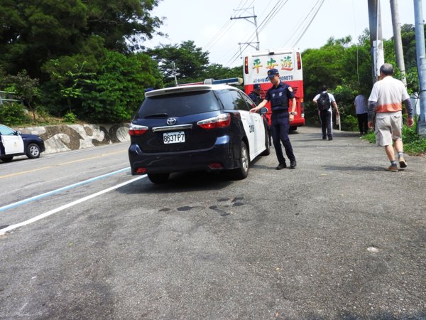 14:47 遊覽車第三度上到劍井,大甲交通警察車也跟來了