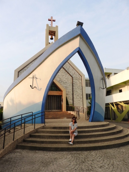 17:36 台灣基督長老教會磐頂教會(中市龍井區遊園南路361巷15號)船型教堂前拍照