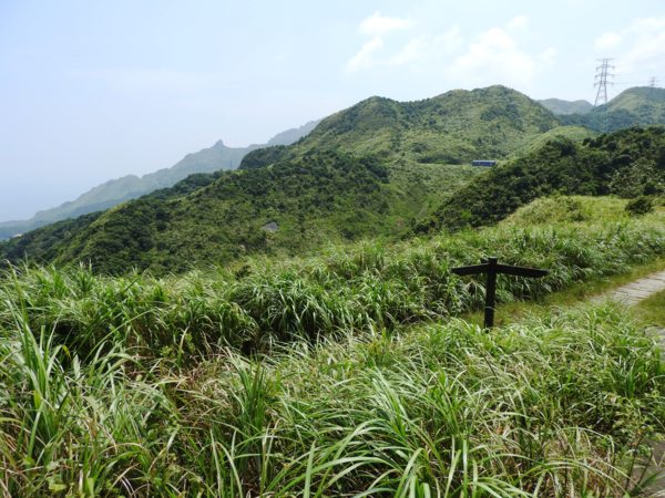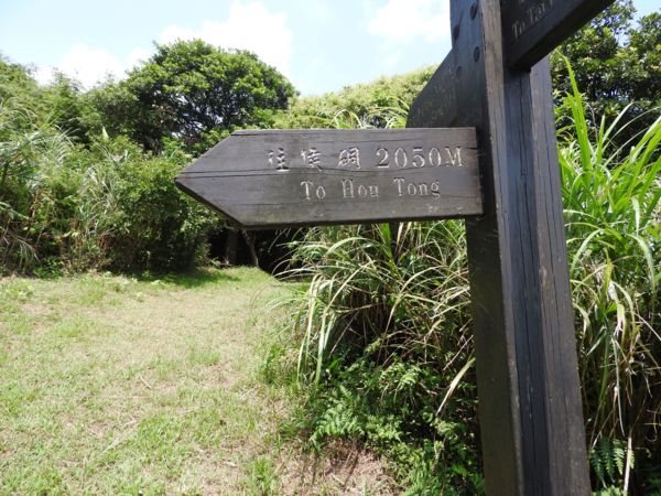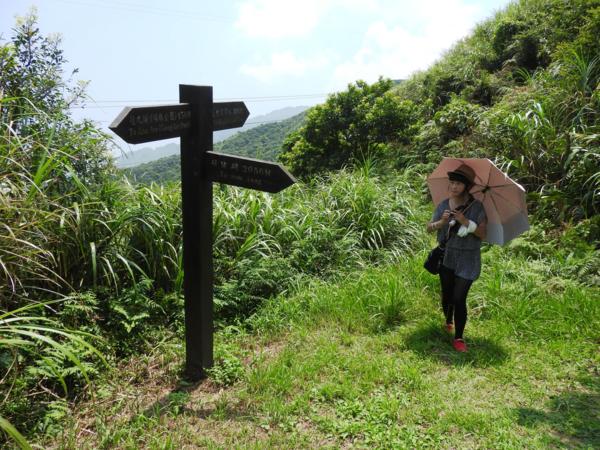 11:16 岔路口指標(直下往侯硐2020M,回頭往九份頌德公園480M,左上芒草小徑往小粗坑峰頂110M)取直下