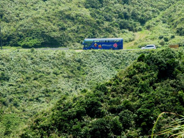 回首停在瑞雙公路的遊覽車