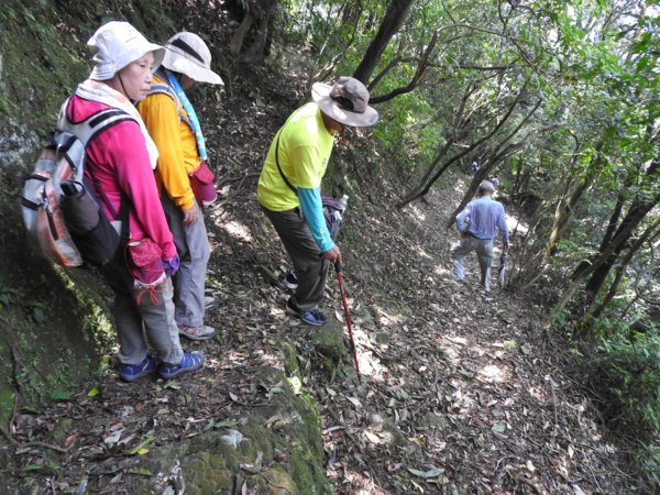 10:16 樹梅坪古道一路無遮蔭,走到海拔四四五公尺石樁處,領隊決定回頭