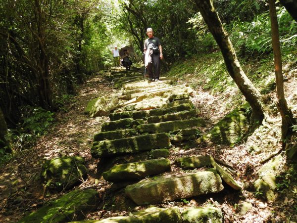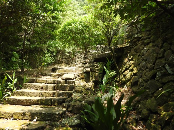 11:56 步道旁大石砌上駁坎的石牆加上光影婆娑的石階,非常美麗