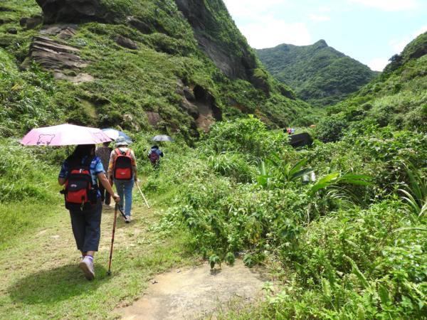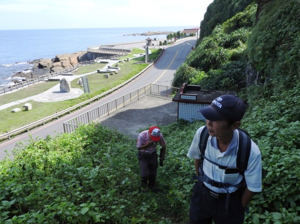 12:56 抵九濱公路後轉入濱二路77之1號民宅巷子往回走(領隊阿伯本想帶隊走向九份,但考量天氣炎熱,改變主意)