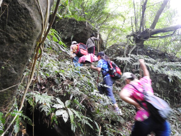 09:35 前方隊伍到裂岩尖攀繩處後撤