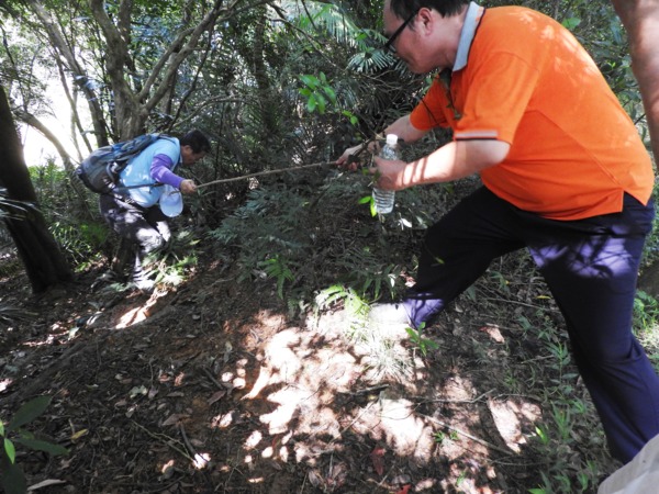 14:52 楊梅福人路「福人步道」入口下車,正好清潔人員正在登山口消毒噴藥