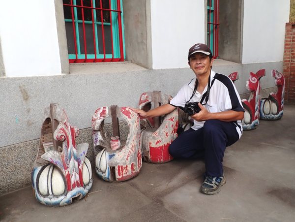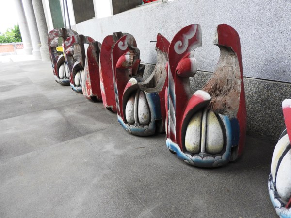 象山孔廟整修時拆下來損壞的瓜筒擺在建築旁邊作為紀念