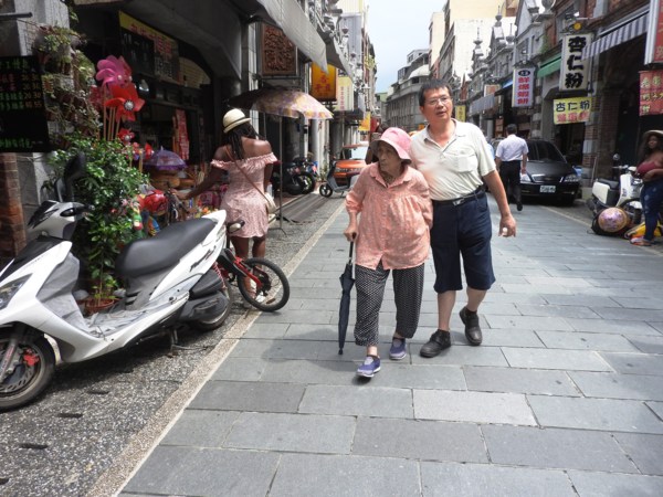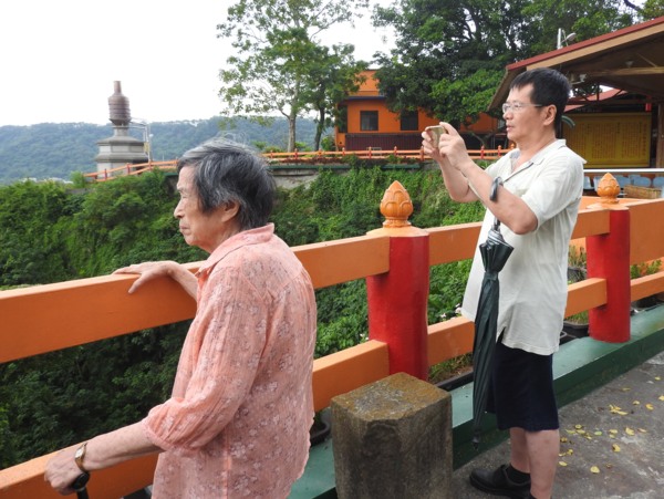 11:33 老媽爬上147階的雲梯,抵觀音寺廟埕