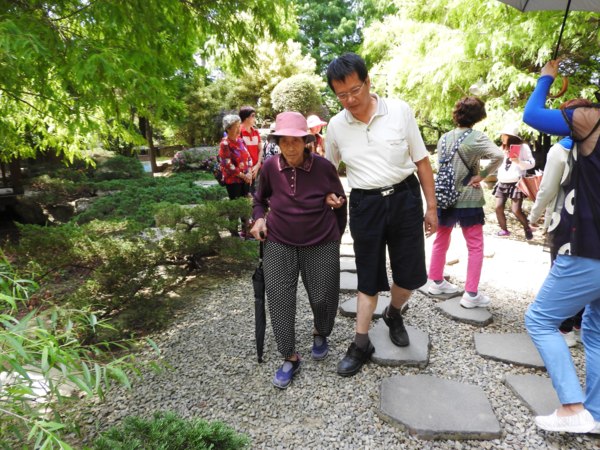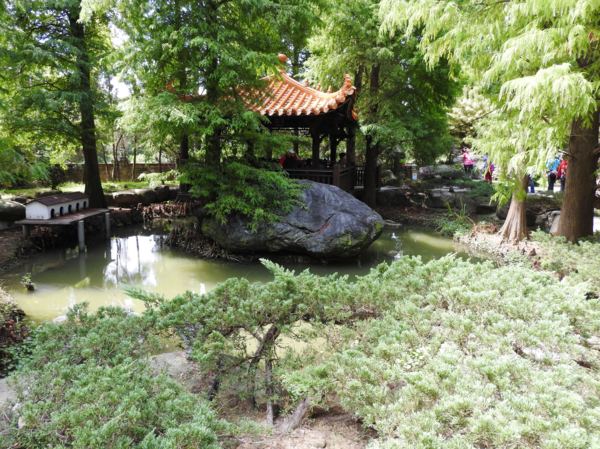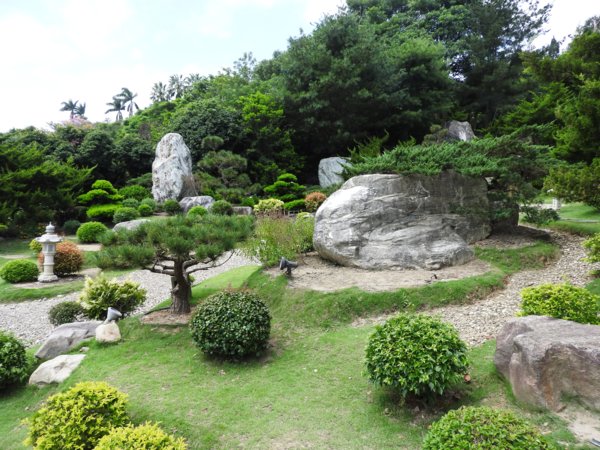 由大門進去先看到的是寬廣的日式庭園,優雅的庭園造景,綠意滿滿的植栽,讓人看了心情舒暢,沿著石板步道享受悠閒時光,最後有一座中式涼庭與小溪流,可以在這裡休息一下。