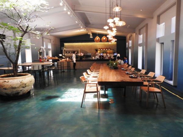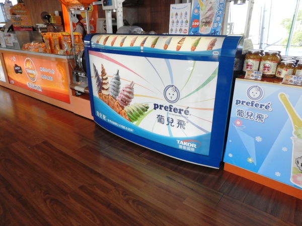 三合院門市座落在卦山路139縣公路旁,附近可以看到鳳梨田。這裡的試吃早期是在戶外領取享用,2017年4月打造「呷茶 奉茶」室內空間,原木長桌、水藍色波紋地板與綠色植栽,既漂亮又舒適。入座後,店員會為每人奉上一份鳳梨酥與烏龍茶,坐在漂亮的環境裡,美味的鳳梨酥感覺更好吃了。