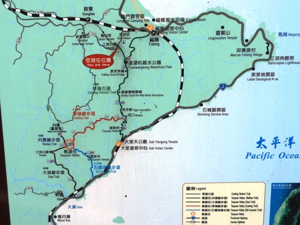 土地公廟→遠望坑親水公園→跌死馬橋→雄鎮蠻煙→虎字碑→埡口→護管所→大里天公廟→大里遊客中心